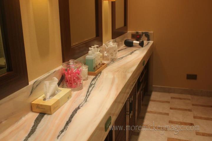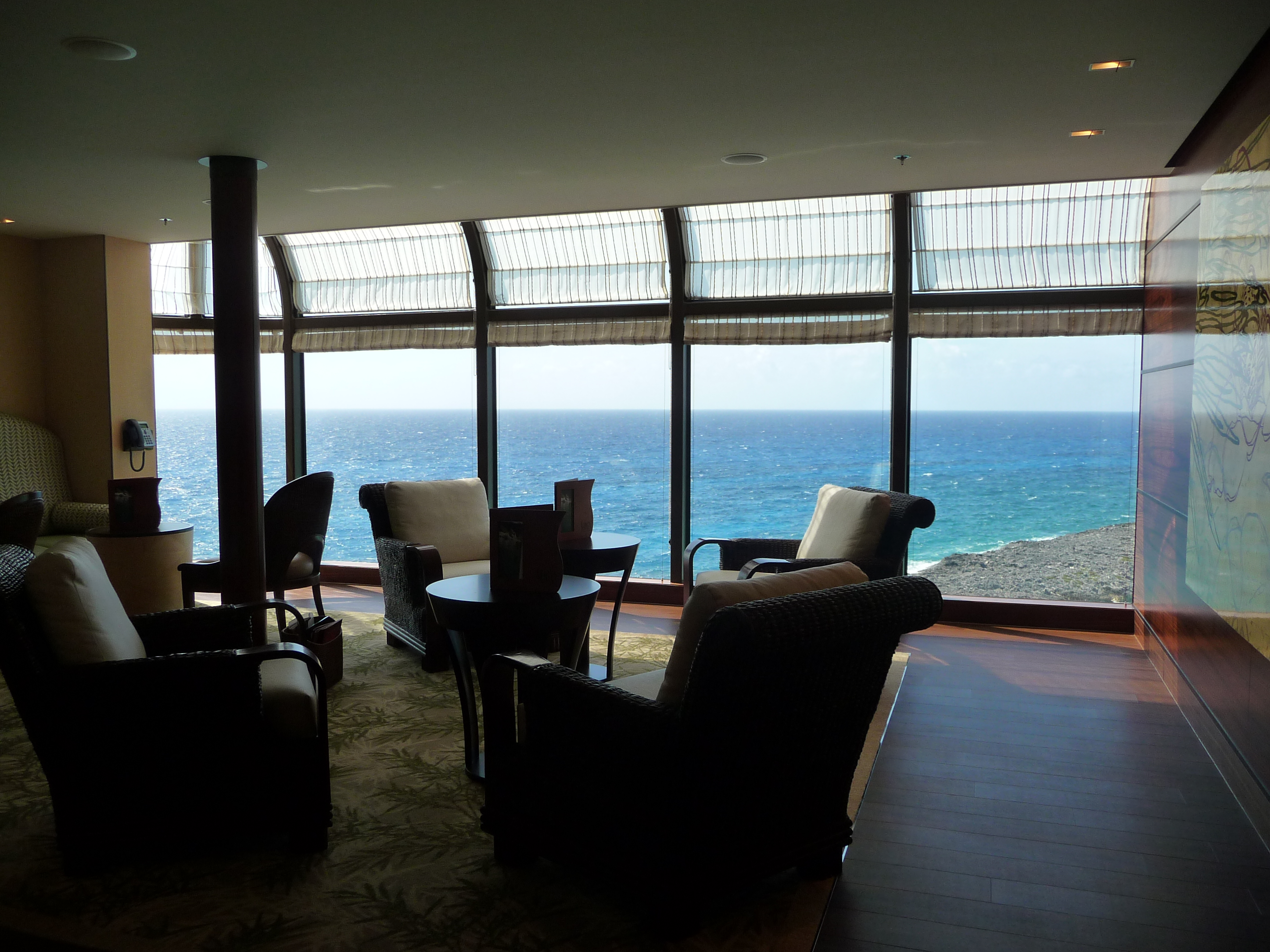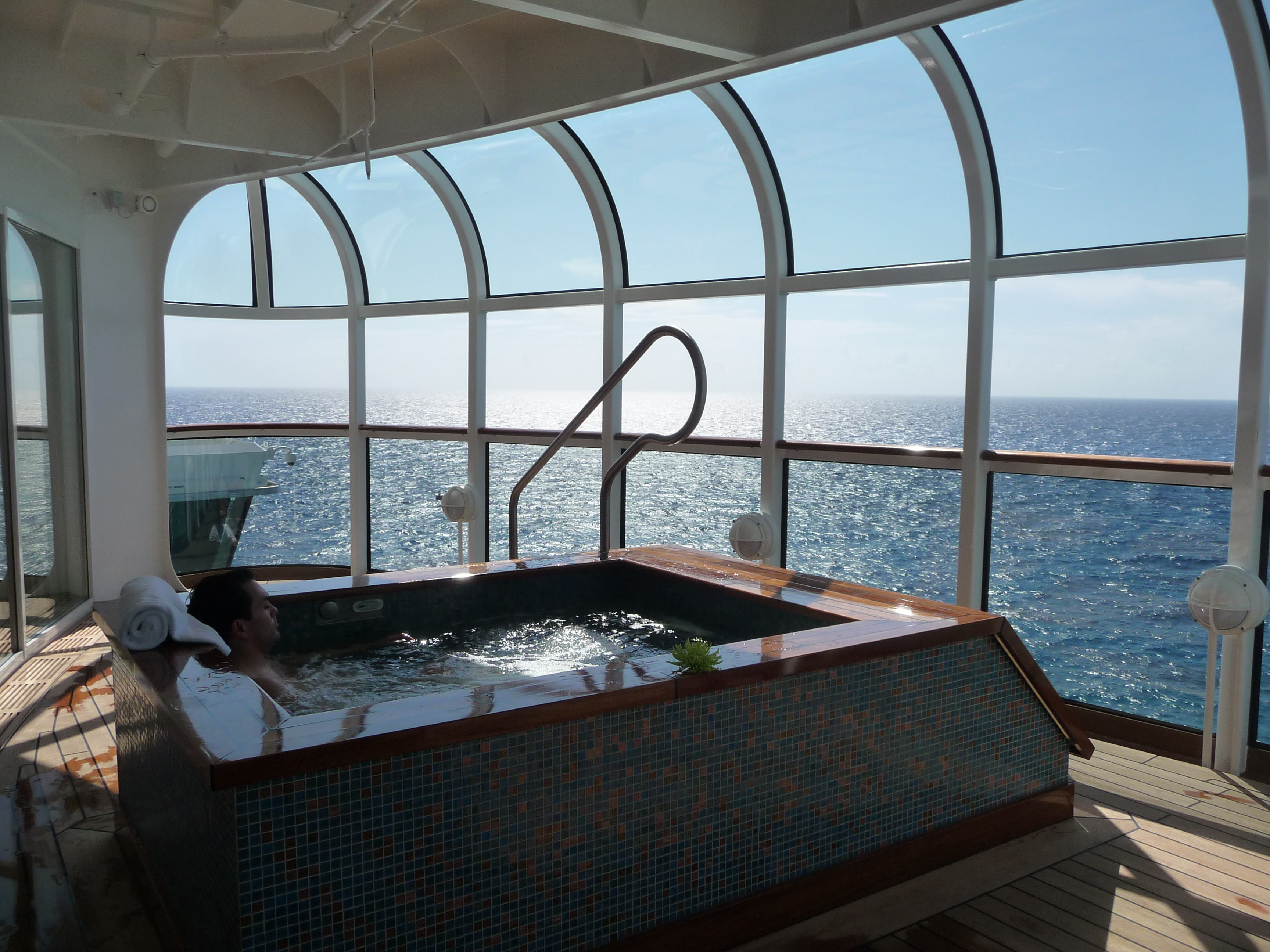 Not only did you get the wonderful showers but you also have access to the 2 saunas, the relaxation room, and the HOT TUBS!!! Yep…they overlook the ocean with a real ocean-breeze at your face as a middle paneling of the room is missing to give you a real sense of tranquility. In addition, there were endless helpings of lemon and cucumber water as well as SUPER comfy robes and flip flops. And when you were done…feel free to head on over to the shower room stocked full of product to help you get ready for the evening.